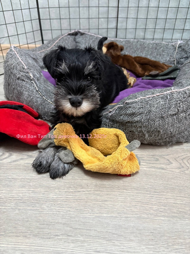 Девочка черный с серебром, мальчик перец с солью. Документы Скор. Помет закрыт Дата рождения 13.12.2025г Папа: Фил Ван Тип Топ Марсель Донжуан ЗДЕСЬ Мама:Иллюзия Хит Улдуз Здесь Видео нашей малышки можно посмотреть у нас в группе в VK Все вопросы по щенкам, зарезервировать щенка можно по телефонам.